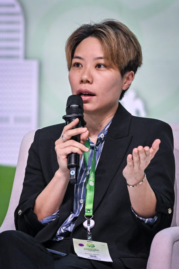 HSBC Global Head of Heavy Industry Decarbonisation, Sophie Lu, speaks during the panel session on advancing industrial decarbonization at the Indonesia International Sustainability Forum (ISF) 2025 at the Jakarta International Convention Center (JICC), Jakarta, Saturday (October 11, 2025).